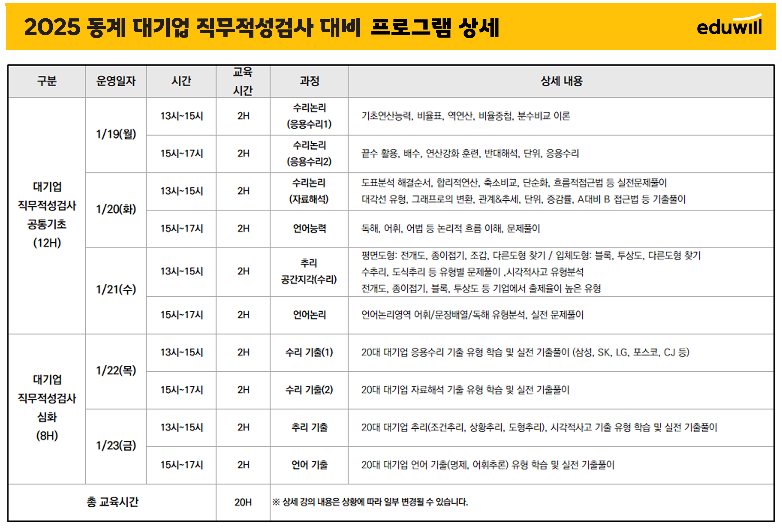 2025학년도 동계 대기업 직무적성검사 대비 프로그램(무료!)이 개설되었습니다!
