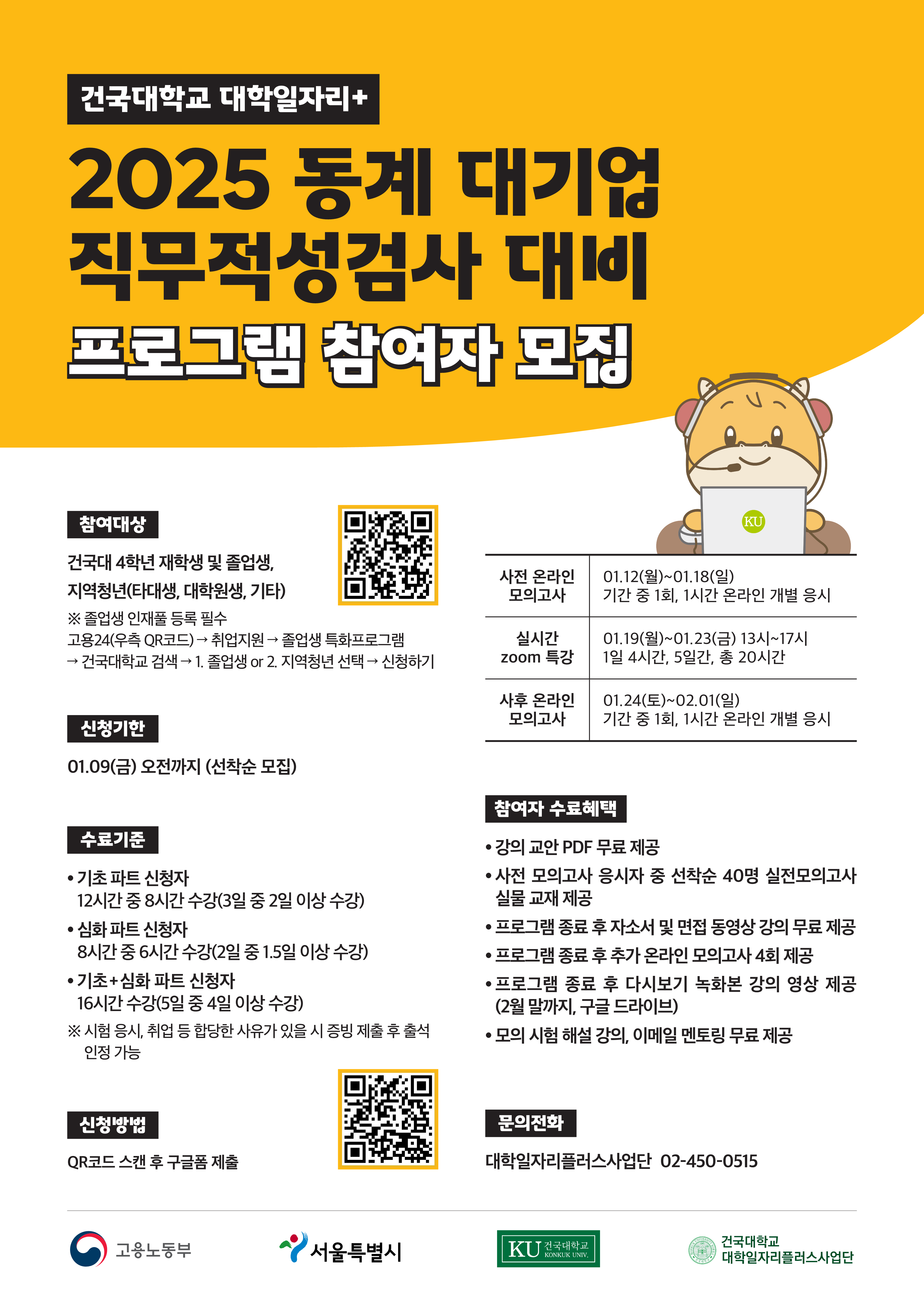 [대학일자리+] 2025학년도 동계 대기업 직무적성검사 대비 프로그램